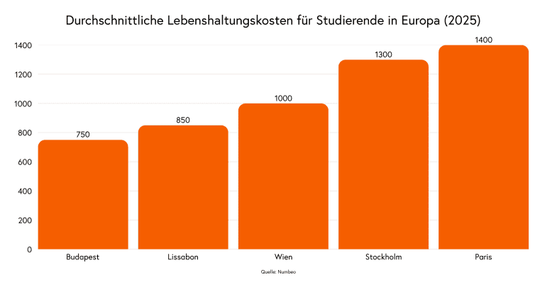 Um die Lebenshaltungskosten im Zielland einzuschätzen, lohnt sich eine gezielte Recherche. Vergleichsportale, Statistiken, Webseiten von Universitäten und Erfahrungsberichte geben einen guten Überblick über Mietpreise, Lebensmittelkosten und sonstige Ausgaben. Ein Vergleich mit den bisherigen Lebenshaltungskosten hilft, ein realistisches Kostenbild zu entwickeln. Eine Plattform ist Numbeo und du findest: