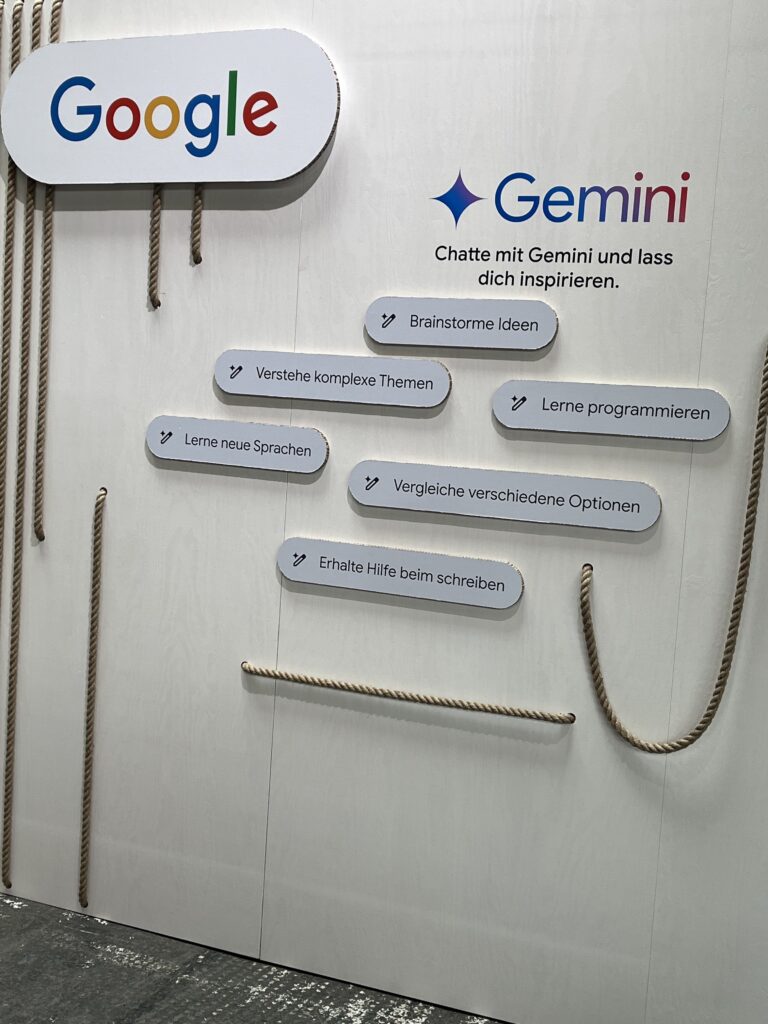 Doch auch der Spaß ist nicht zu kurz gekommen. Auf unserem Instagram Kanal konntet ihr beobachten, wie wir per Siebdruck Verfahren T-Shirts und Taschen bedruckt haben. Selbst die Maus und Bernd das Brot haben sich blicken lassen und mit den Besucher:innen Fotos gemacht. Wir konnten bei einer Art Installation namens ANA per Interaktion mit KI eine individuelle Geschichte kreieren lassen und uns von Google Expert:innen ihre KI Software Gemini erklären lassen. Ein kleiner Roboter hat mit uns interagiert und die Kinder vor Ort unterhalten.